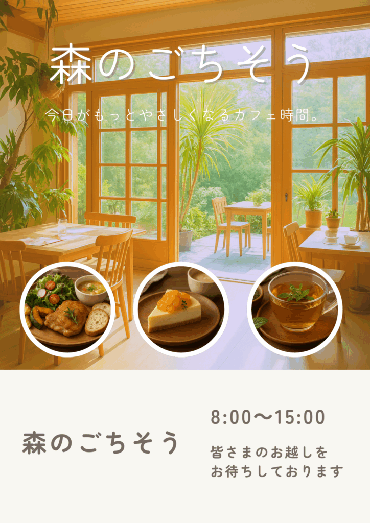 コンセプト 「自然の恵みを大切にする、心と体にやさしいレストラン」をテーマに、 ブランドアイデンティティを一貫したデザインで表現しました。 健康的で美味しい食事を提供する、温もりあるレストランの世界観を 丁寧に構築しています。