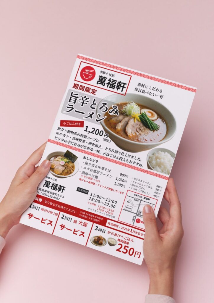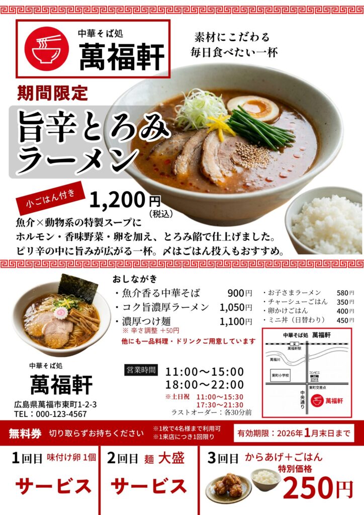中華そば処 萬福軒 期間限定メニュー告知チラシ制作