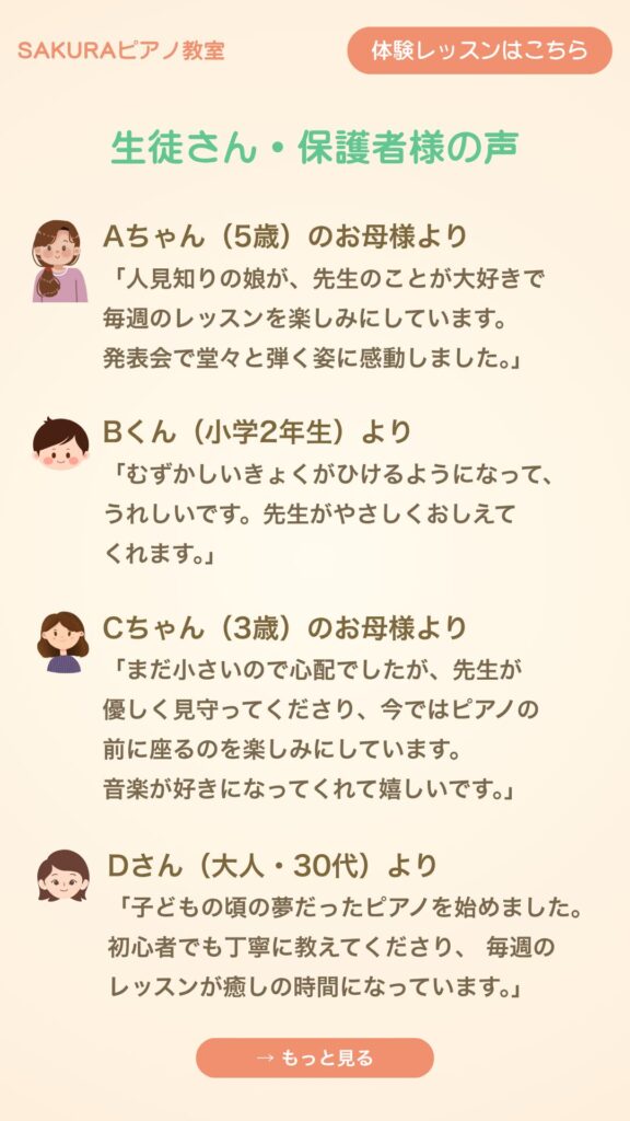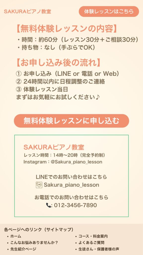 個人ピアノ教室のための完全オリジナルランディングページを制作いたしました。